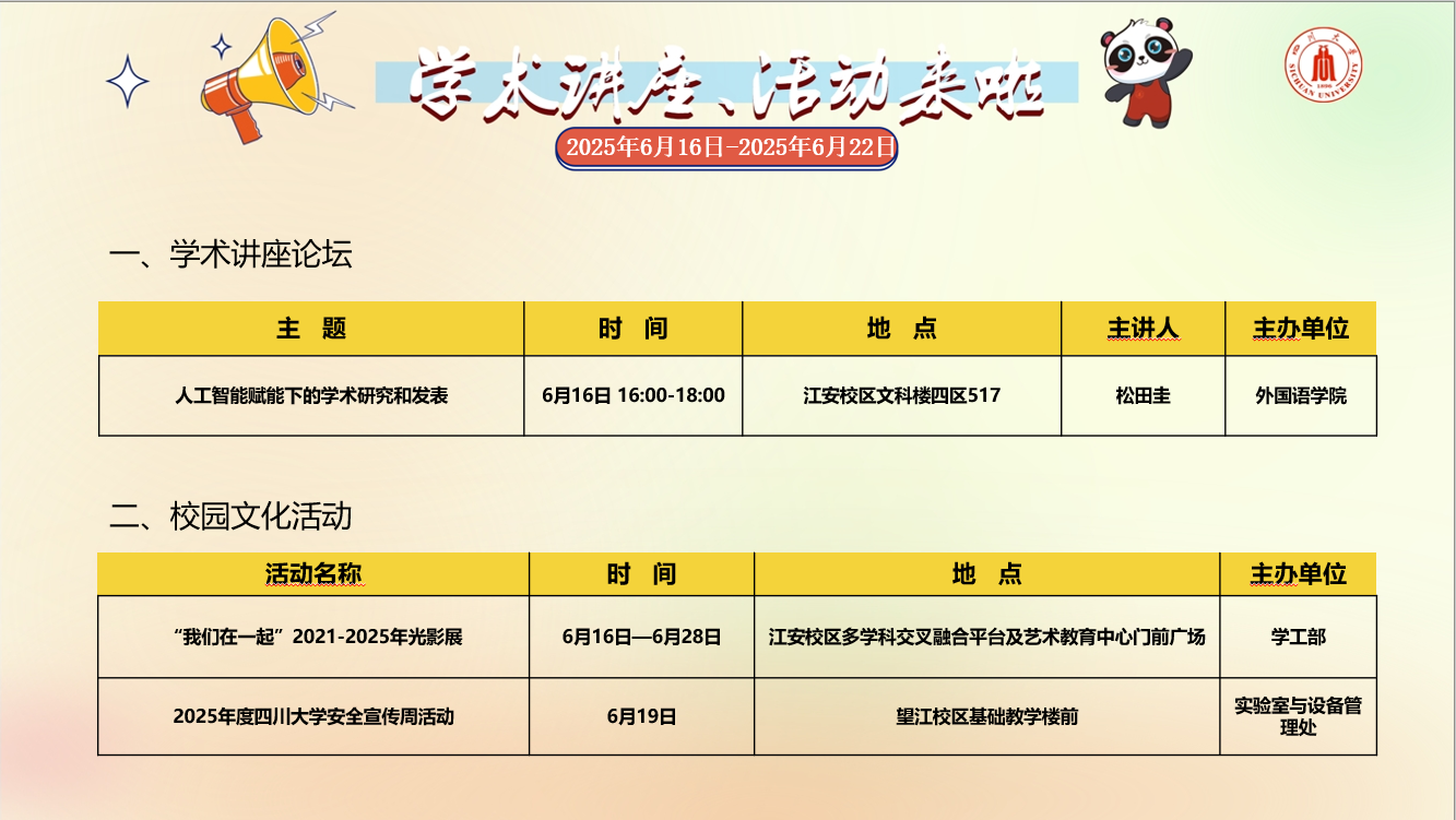 学术讲座论坛及校园文化活动预告(6月16日-6月22日)
