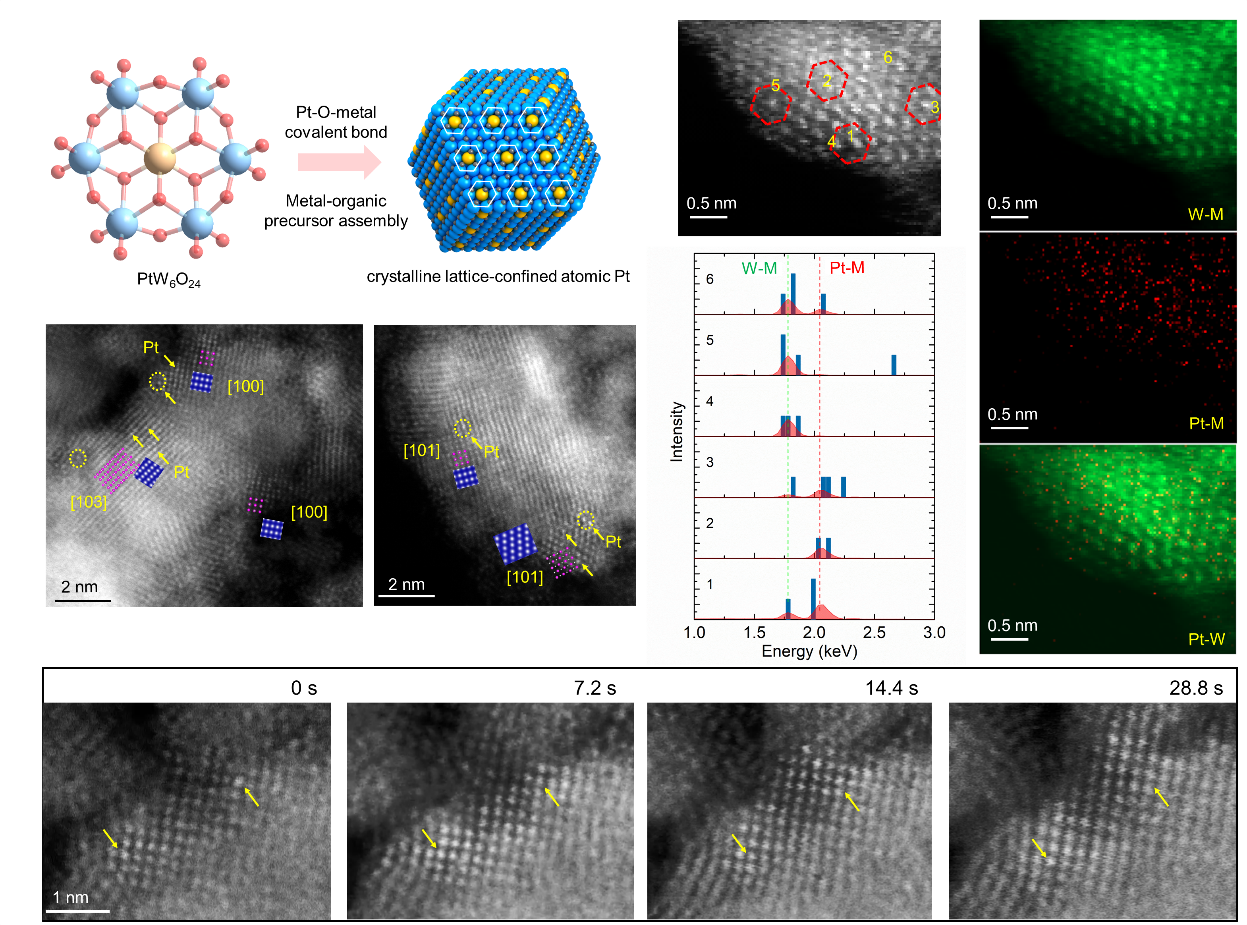 图1. PtW6O24框架结构制备的碳化钨晶格限域Pt单原子材料