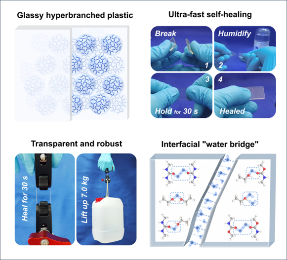 开发具有自我修复能力的高分子材料,使受损的材料能够有效地自我自修复和再生利用,是缓解“白色污染”的手段之一。然而,玻璃态高分子的分子堆砌密度大和分子链运动被冻结网络,很难实现常温自修复。尽管,近年玻璃态自修复的高分子材料已经取得了突破性进展,但较低的力学性能、复杂的修复方法和冗长的修复时间使其难以得到实际应用。因此,开发能够在玻璃态下快速修复的高性能高分子材料无疑是一项重大挑战。近日,学院吴锦...