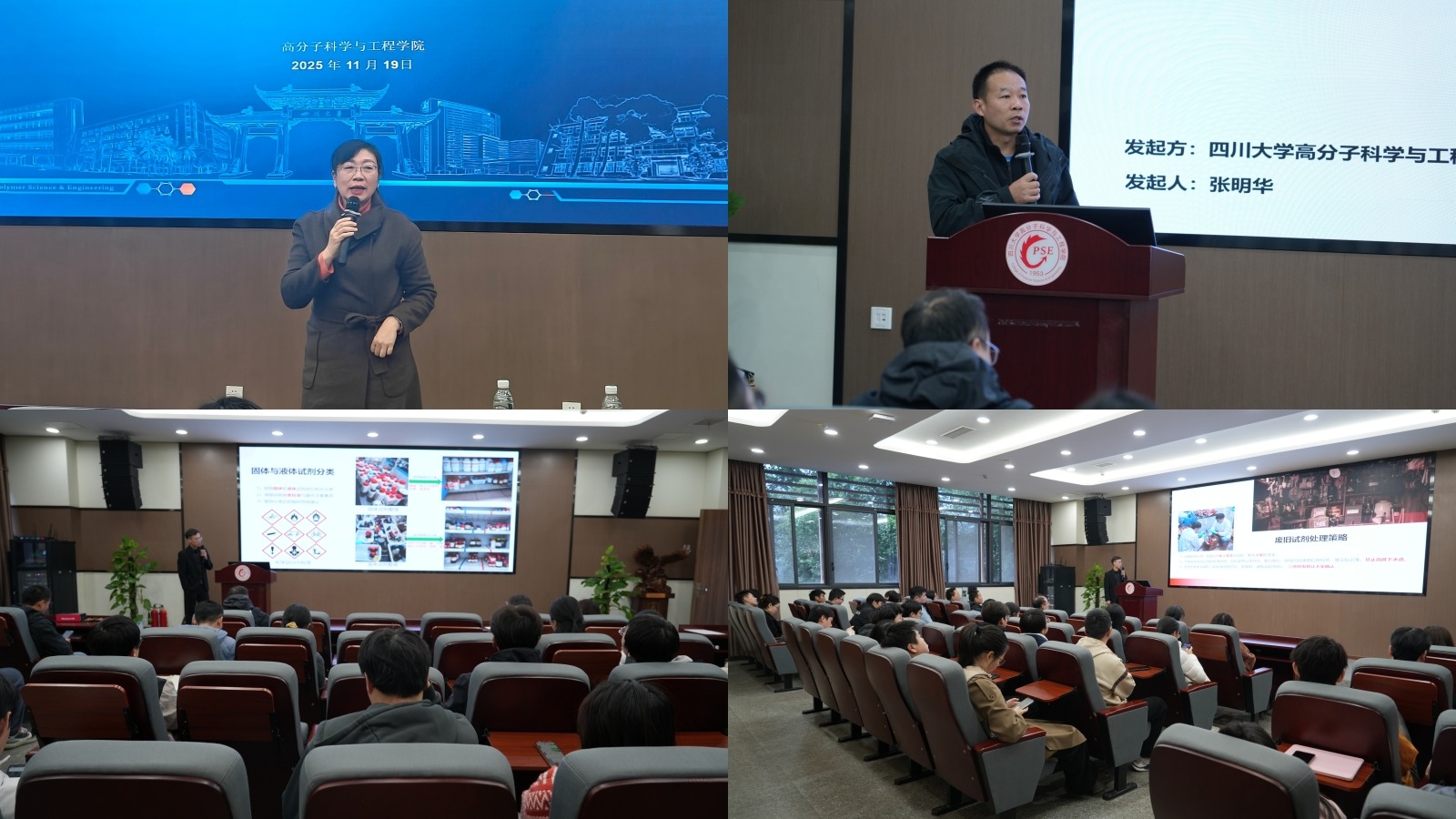 为激发中学生对高分子学科的兴趣,搭建创新实践平台,吸引优质生源,2025年11月21日,成人漫画 附属中学的170余名师生来成人漫画 开展研学活动,活动在学院科教楼209报告厅举行。学院院长助理王宇研究员带来“浅品高分子”科普讲座。他从“高分子与地球生命起源”“高分子与人类文明进步”“川大高分子特色与优势”三方面,以生动有趣的方式,揭开日常分子世界的神秘面纱,展现高分子艺术魅力,激发同学们探索热情,鼓励大家永葆对科...