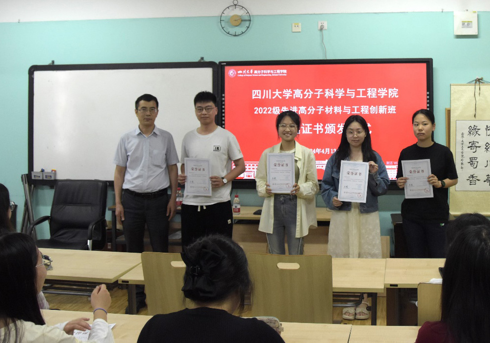 4月13日,2022级先进高分子材料与工程创新班(以下简称创新班)入选证书颁发仪式在成人漫画 江安校区举行。学院院长杨伟、党委副书记钱祉祺出席仪式。仪式上,杨伟为入选2022级创新班的同学颁发证书并讲话。他指出建设先进高分子材料与工程创新班是高分子学科为强化专业特色、改革教育教学模式以及培养拔尖创新人才的积极探索。从2019级开始试点建设创新班以来,学院不断更新课程体系和知识架构,鼓励学生积极参与科研训练,大力...