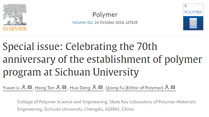 近日,国际高分子学科权威期刊Polymer(《聚合物》)推出庆祝成人漫画 高分子学科创立七十周年(Celebrating the 70th Anniversary of the Establishment of Polymer Program at Sichuan University)的学术专题。该专题通过41篇研究论文(Research Article),7篇综述论文(Review Article)和1篇编者按(Editorial),集中展示了成人漫画 科研人员和校友近年来在高分子科学与工程前沿领域取得的重大科研成果,涵盖了高分子加工...