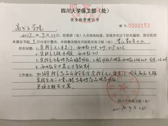 为做好实验室安保工作、建立《成人漫画 实验室安全与环保防范保障工作体系》,学院于2017年12月28日学院与各系所签订了《成人漫画 安全工作暨社会综合治理责任书》,明确了实验室安保检查队伍...